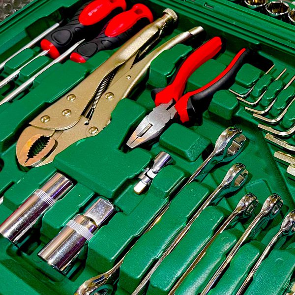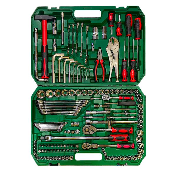 با جعبه ابزار 150 پارچه حرفهای SRUNV، هر ابزاری که برای تعمیرات خانگی، خودرویی و صنعتی نیاز دارید، در کنار هم دارید. این مجموعه کامل و مقاوم در یک کیف فشرده و خوشدست قرار گرفته و از آلیاژ فولاد کروم وانادیوم (CR-V) ساخته شده که دوام و مقاومت فوقالعاده در برابر زنگزدگی و فشار دارد