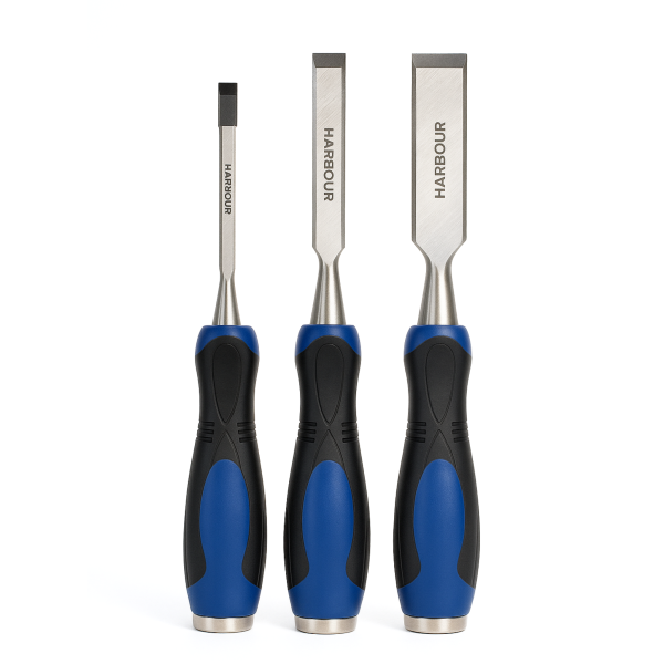 ست مغار HARBOUR H3200 شامل سه عدد مغار در سایزهای مختلف است که برای برش، فرمدهی و پرداخت دقیق سطوح چوبی طراحی شدهاند. این مجموعه با تیغههایی از فولاد کربنی با سختی HRC 54-58 ساخته شده تا در برابر سایش و کندی مقاومت بالایی داشته باشد.
