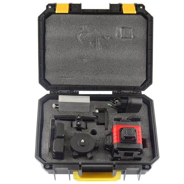 • ✔ به همراه دو عدد باتری، عینک مخصوص لیزر، پایه مگنتی دیواری( آهنربا)، جک تنظیم ارتفاع تراز و شارژر‌