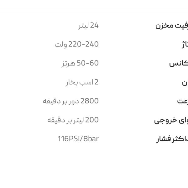 - ولتاژ برق: تکفاز ۲۲۰ ولت