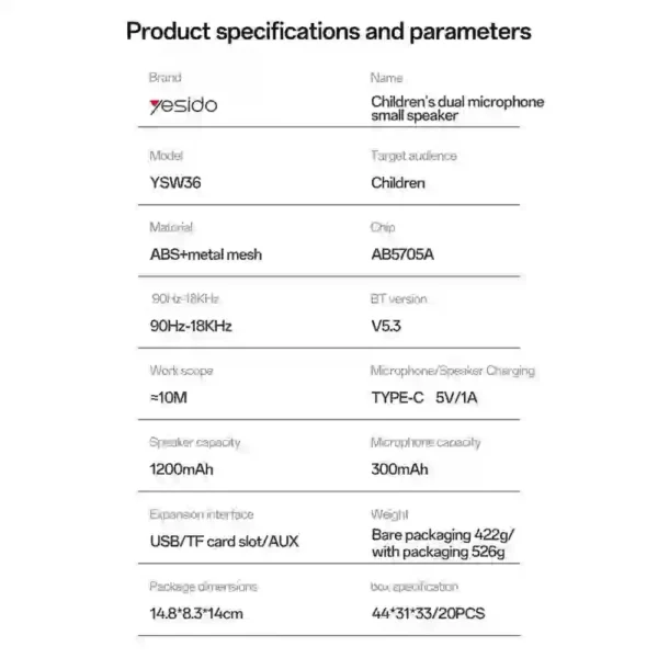 - نوع محصول و مدل دقیق: اسپیکر بلوتوثی قابل حمل یسیدو مدل YSW30
