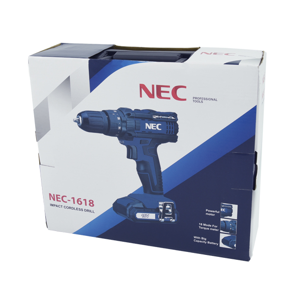 دریل شارژی چکشی NEC لیتیوم 18 ولت مدل 1618